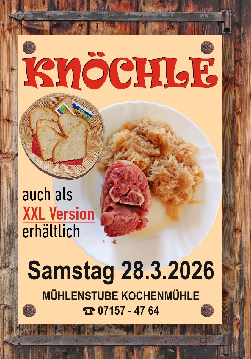 Aus Koordinationsgründen bietet wir nun doch RESERIERUNGEN zum ROSTBRATEN ESSEN im MÜHLENSTÜBLE aufgrund des begrenzten Platzbedarfs an. So kann besser koordiniert werden und auch Sie können besser planen und sind sicher, Ihren Rostbraten zu bekommen. Alle Fragen zum Rostbraten unter Reservierungstelefon Tel. 07157 - 47 64.
